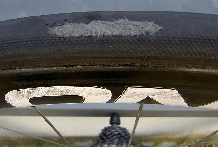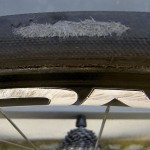 Nun aber zu mir, ich wollte bei sommerlichen Temperaturen schön im mit 240 Fahrern doch sehr großen Feld, mitfahren. 3 Runden ging das dann auch gut, aber als ca. 300m vor dem Zielberg ein Massensturz passierte und ich eine Vollbremsung hinlegte, um nicht auch rein zu rauschen, und ich schon dachte, puh nochmal gut gegangen, da schoben mich von hinten die Fahrer doch noch auf den vor mir liegenden Fahrer. Nachdem ich mein Rad wieder hatte, machte ich mich auf die Verfolgung. Im Berg erreichte ich dann das Ende des Feldes, da einige Fahrer vor mir aber direkt abreißen lassen, war ich direkt wieder abgehängt. Bin dann in meiner Gruppe noch 1,5 Runden gefahren und stellte dabei auch eine Unwucht beim Fahren fest. Nachdem ich ausgestiegen war, kontrollierte ich dann mein Hinterrad….war tatsächlich eine Vollbremsung. (siehe Bild unten)